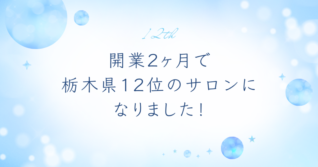 開業2ヶ月で栃木県12位のサロンになりました!